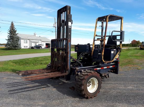 (2) Chariots élévateurs avec fourche MOFFETT M5000, 1997, 1998, 8x8x8, non latéral, en bonne condition.Facebook Lemire et frères